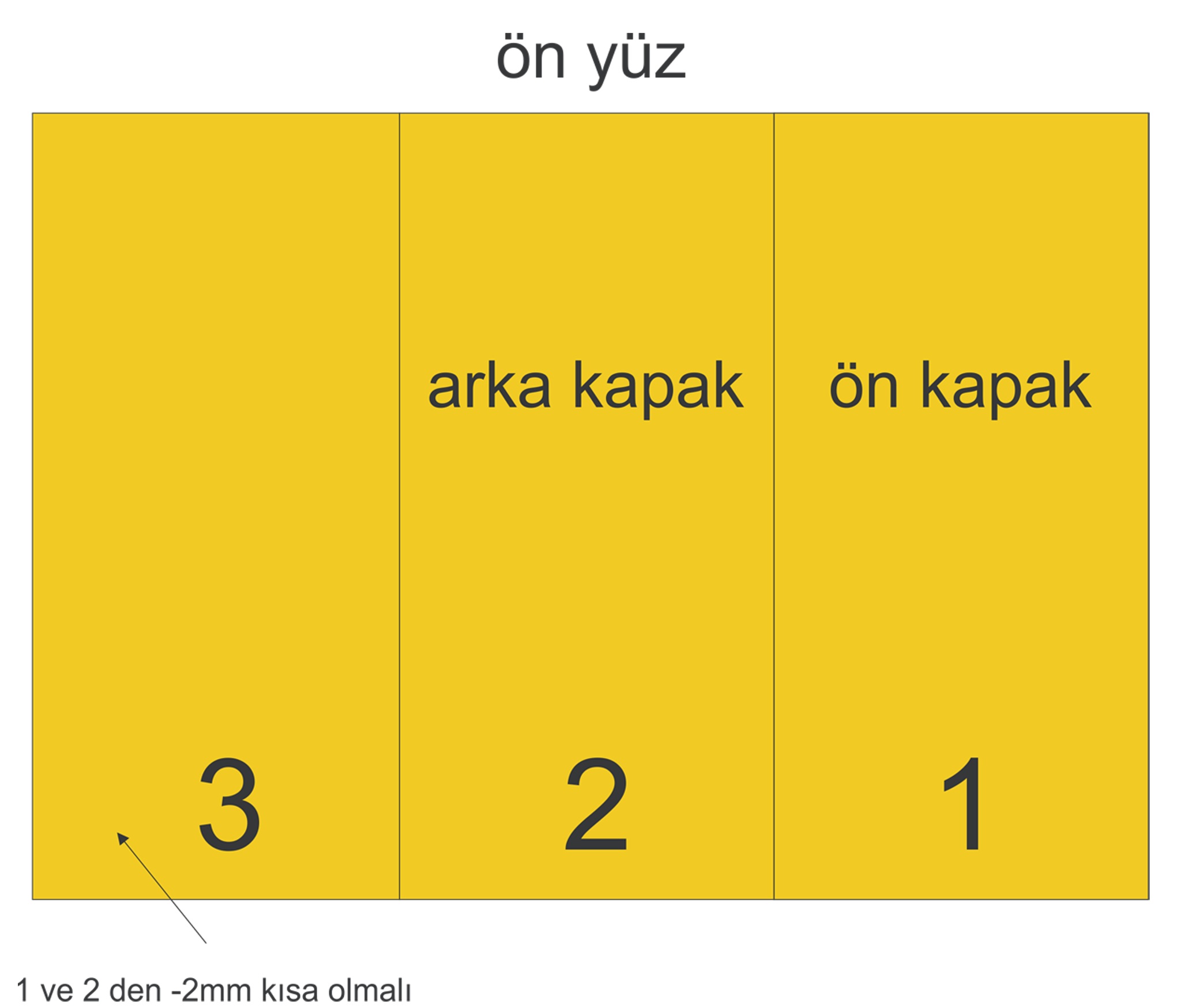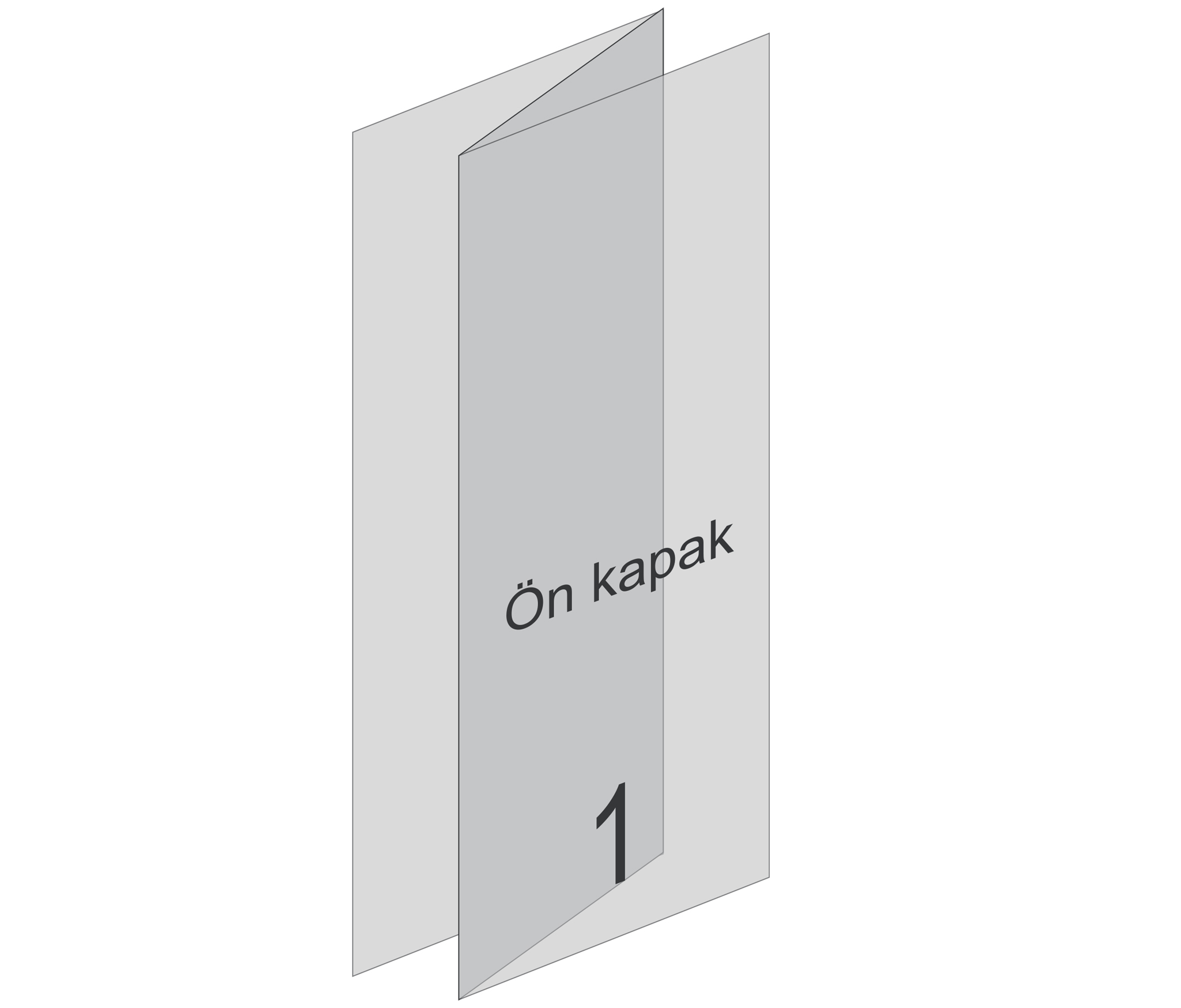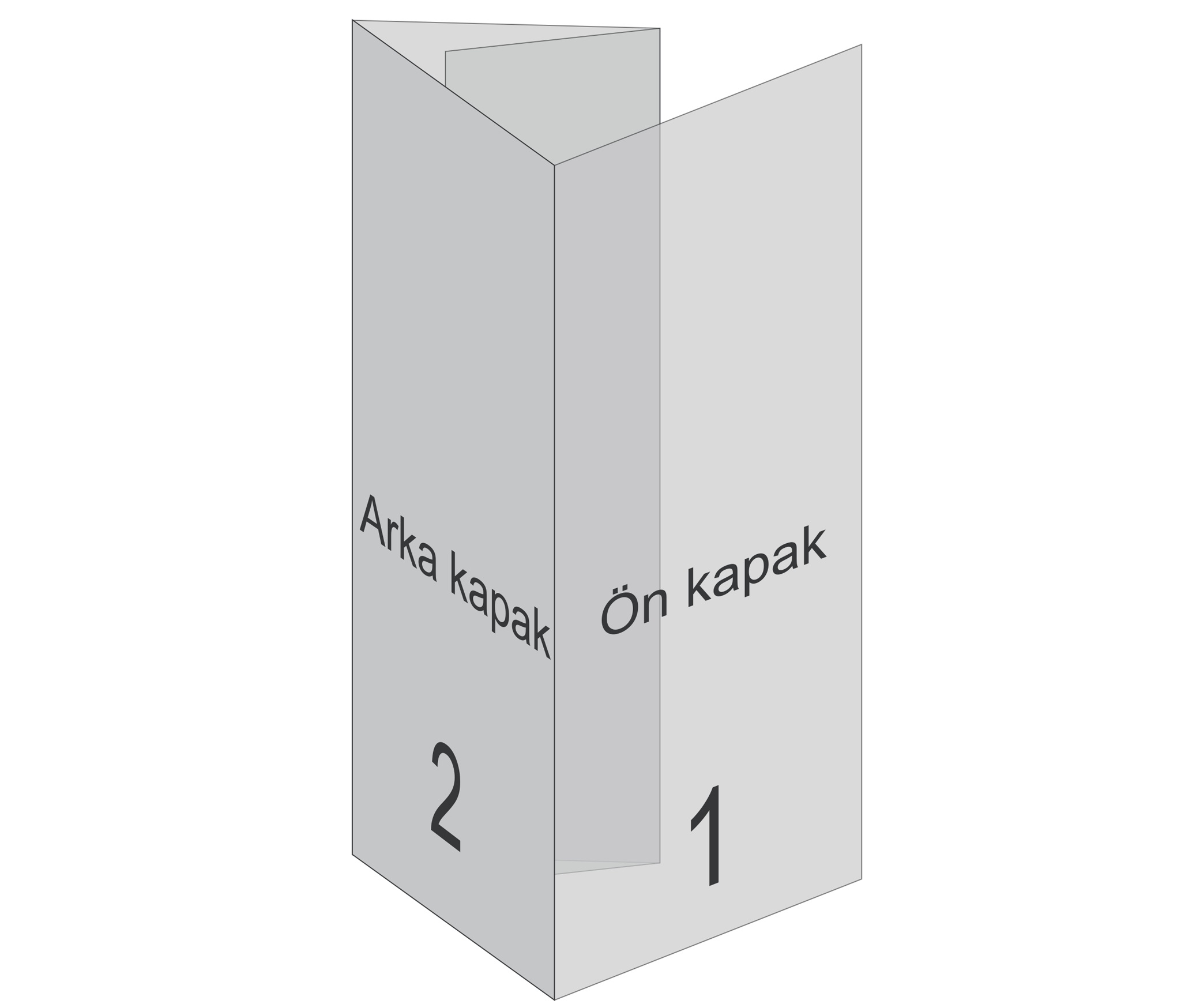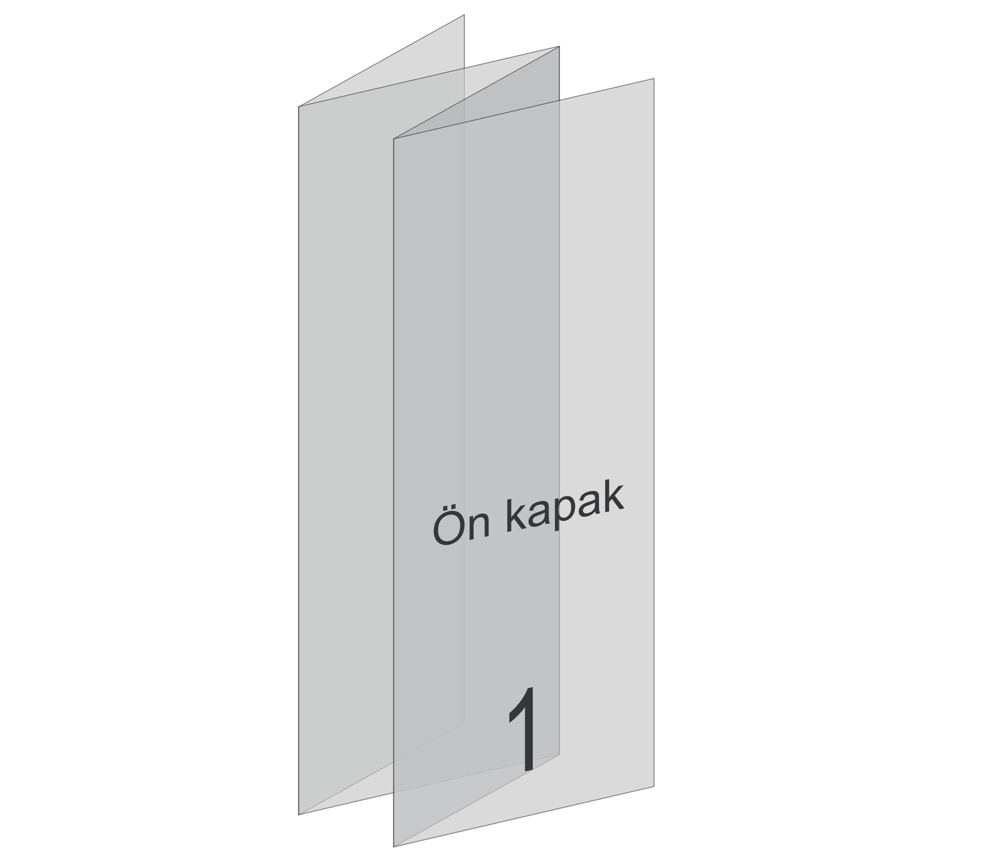 Genellikle a4 broşürlerin diplomat zarfa yerleştirilebilmesini sağlamak amacı ile üretilen broşür tipidir. Fakat özel ebatlı üretimi de yapılabilir. 170 gr ve sonrasında selefon yapılması gerekir. Zeminli işlerde sırt bölgesinde kılcal çatlama oluşur.