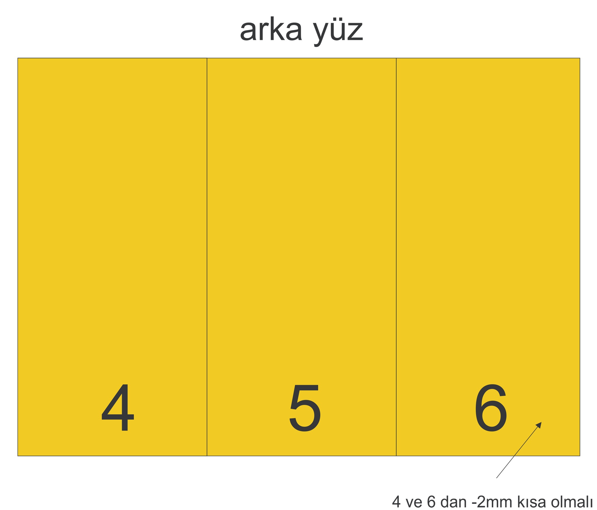 Maksimum 7 bölümlü işler için uygulanan katlama tipidir. Fakat özel ebatlı üretimi de yapılabilir. 170 gr ve sonrasında selefon yapılması gerekir. Zeminli işlerde sırt bölgesinde kılcal çatlama oluşur.