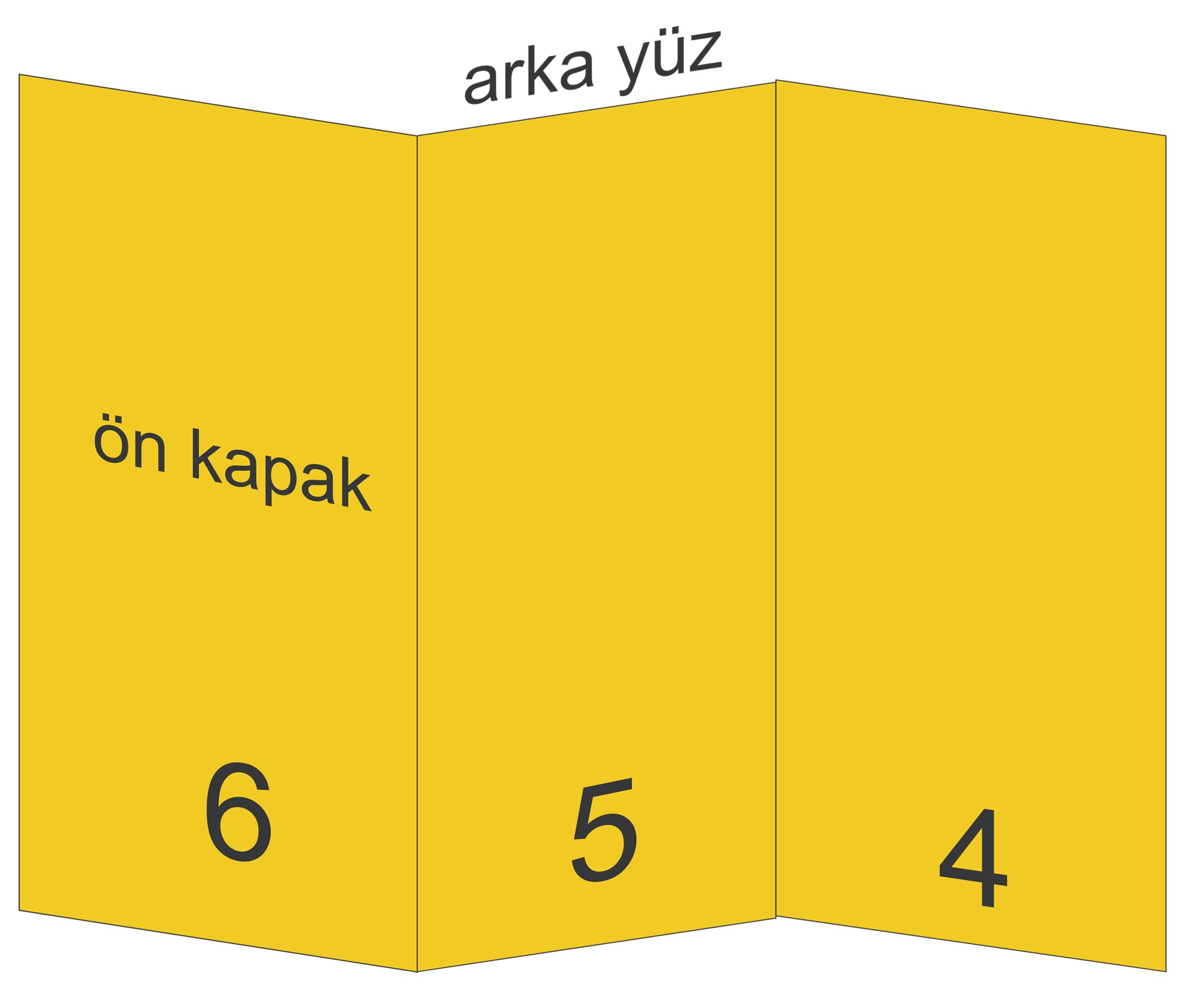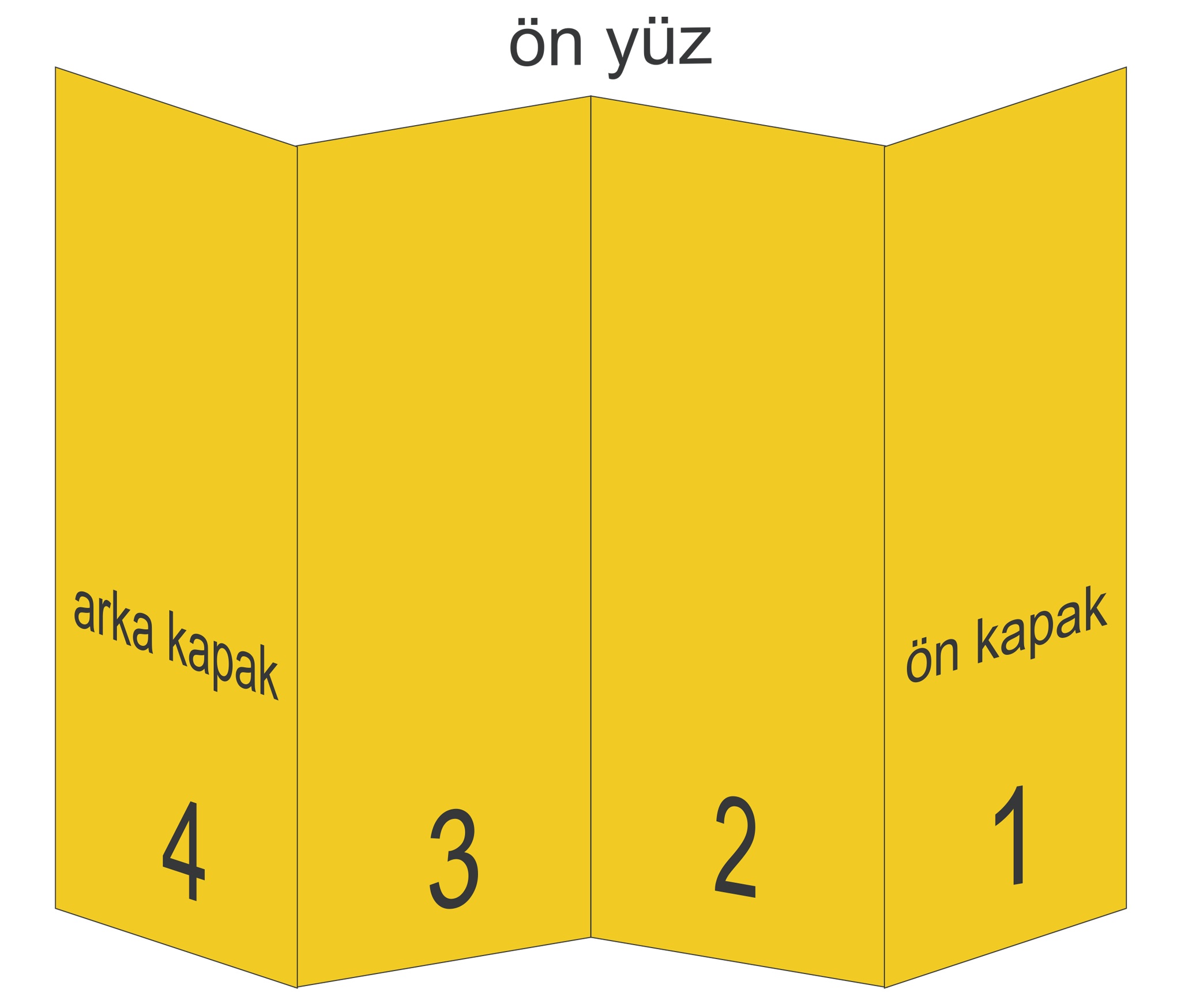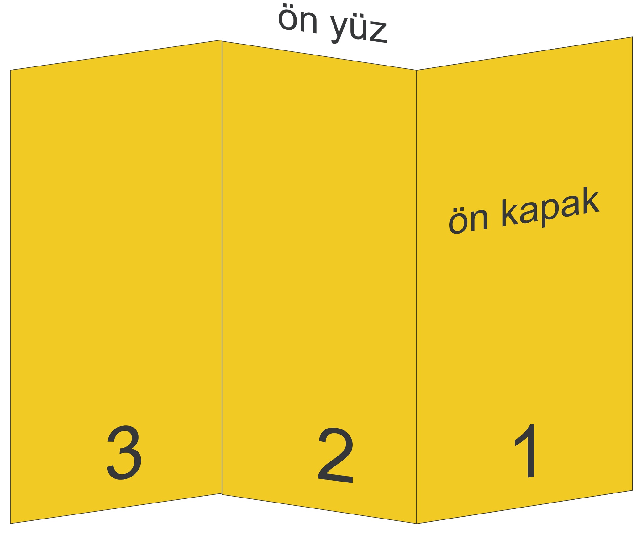 Genellikle a4 broşürler için uygulanan katlama tipidir. Fakat özel ebatlı üretimi de yapılabilir. 170 gr ve sonrasında selefon yapılması gerekir. Zeminli işlerde sırt bölgesinde kılcal çatlama oluşur.