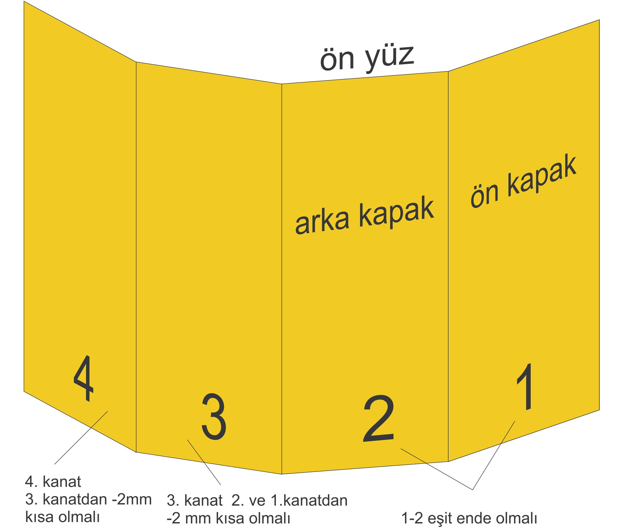 Maksimum 4 bölümlü işler için uygulanan katlama tipidir. Fakat özel ebatlı üretimi de yapılabilir. 170 gr ve sonrasında selefon yapılması gerekir. Zeminli işlerde sırt bölgesinde kılcal çatlama oluşur.