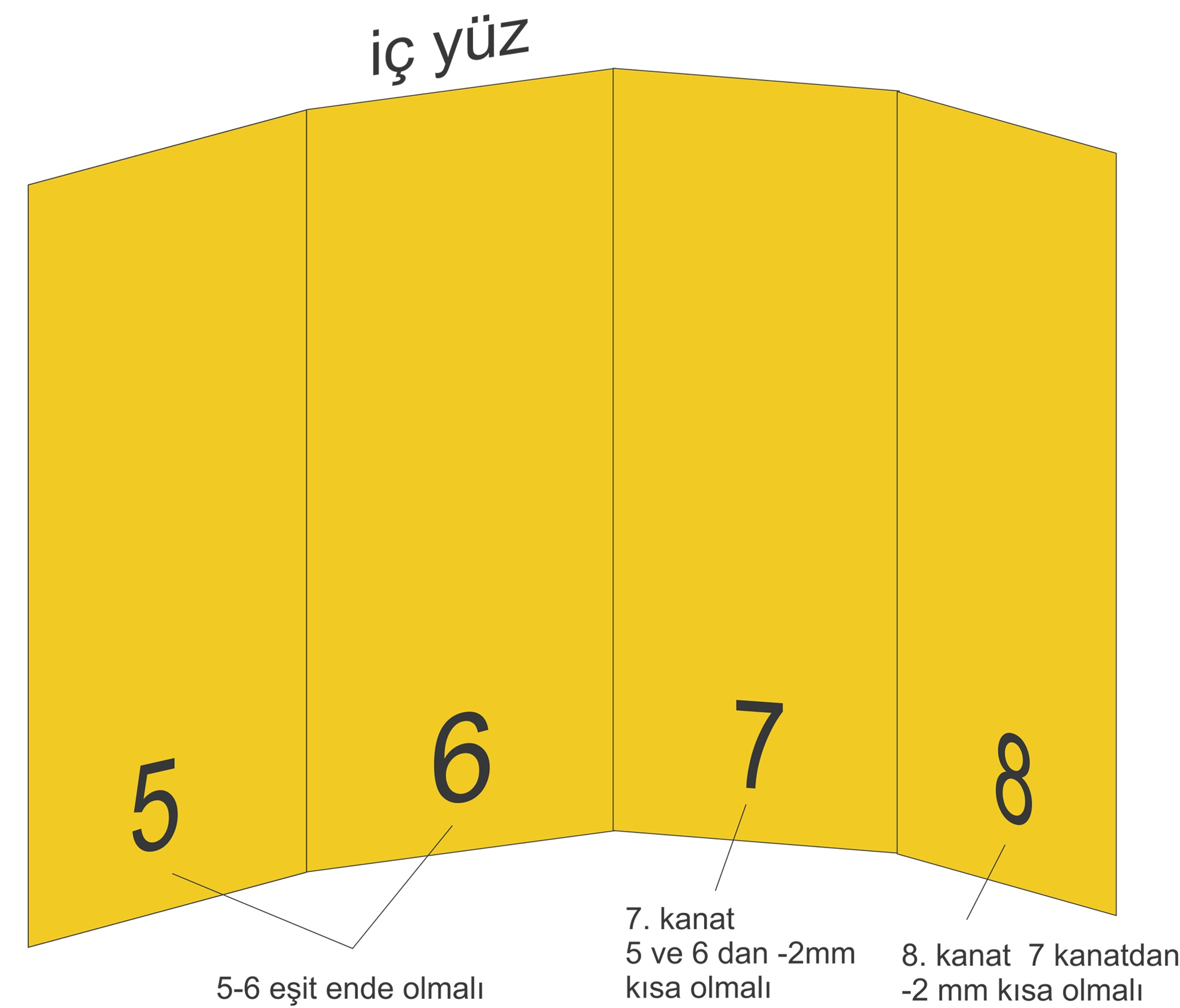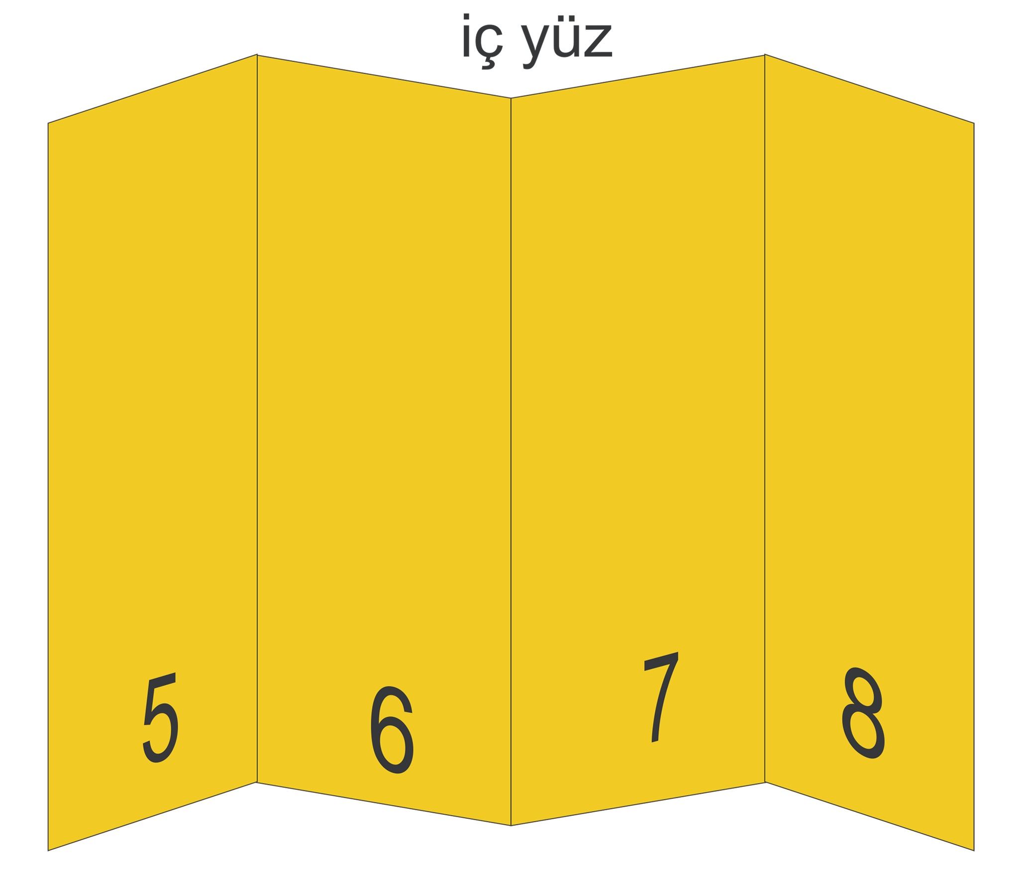 8 sayfa çakmasız işler için uygulanan katlama tipidir. Fakat özel ebatlı üretimi de yapılabilir. 150 gr ve altı kağıtlar için uygundur.